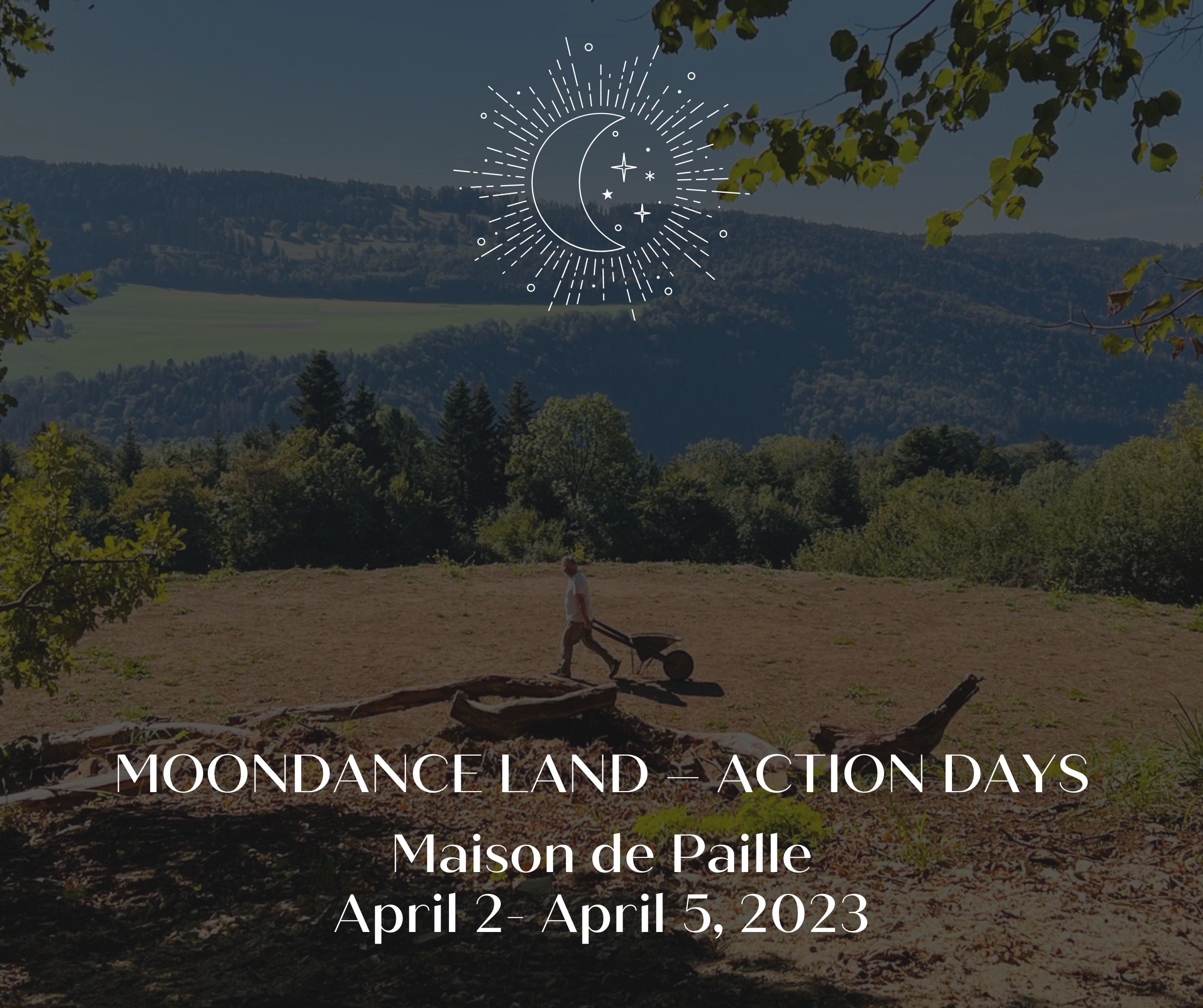 Maison de Paille Essertfallon 43, 2886 Epiquerez, Epiquerez, Jura, SwitzerlandMOONDANCE LAND – ACTION DAYS Intention: Come together as community, prepare the ritual space, build Compost Toilets, support Maison de Paille where help is needed and give back to the land with love & care April 2- April 5, 2023 // CHF 40 per day including food & bed // single days also possible // […]
